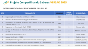 O cronograma do projeto é elaborado considerando um treinamento por mês, sendo executado na estrutura física de cada escola normalmente na última semana de cada mês, onde um grupo entre três ou quatro voluntários vai em sala de aula trabalhar com os alunos, logo, o projeto conta com uma rede extensa de voluntários. Os temas escolhidos inicialmente levaram em consideração as principais ferramentas de prevenção utilizadas na Vale em suas operações.